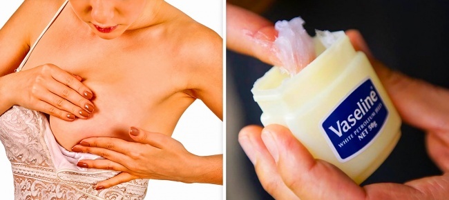 Якщо ви хочете зберегти форму грудей, наносите вазелін кожну ніч, перед сном. Через два тижні ви помітите, що шкіра стала більш пружною і зволоженою.
