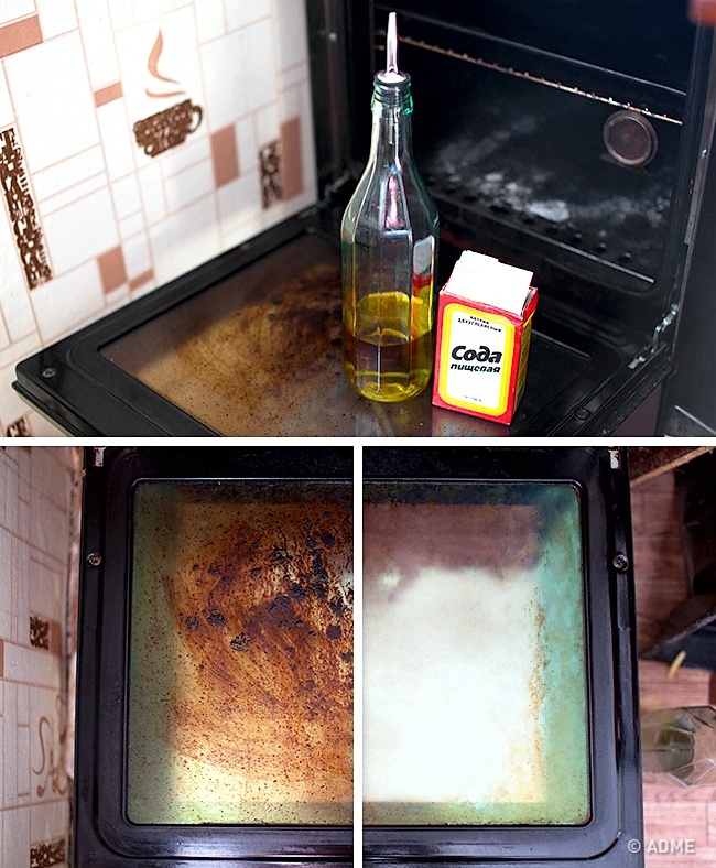 Результат: Ми змішали 1 ложку рослинного масла і 2 ложки харчової соди, нанесли на поверхню духовки і як слід її протерли. Результат приємно здивував: духовка засяяла, як нова.