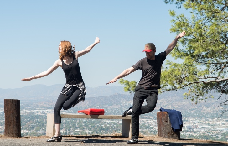 Емма Стоун і Райан Гослінг репетирують танець на знімальному майданчику фільму «Ла-Ла Ленд»
