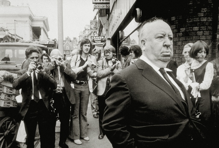 Альфред Хічкок під час зйомок «Несамовитості»