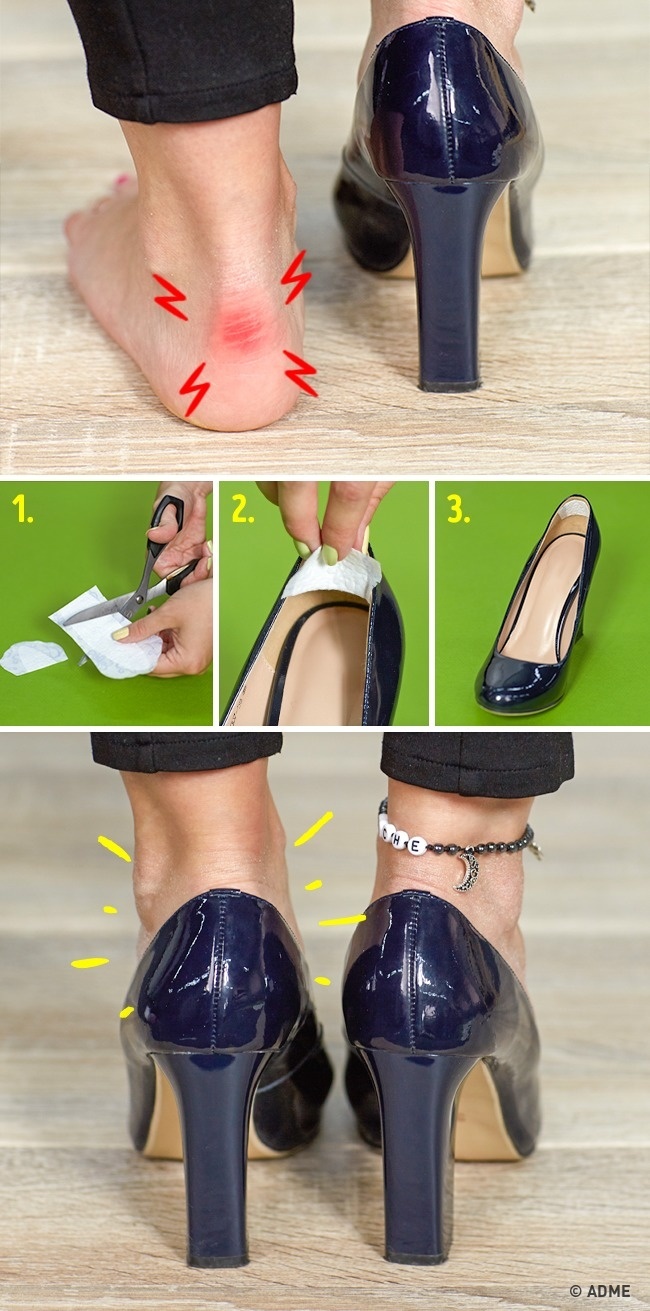 № 2. Якщо пластиру немає під рукою, виріжте шматочок з прокладки і приклейте його до взуття, щоб запобігти натирання