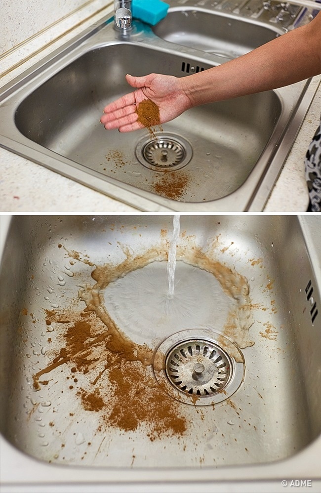 № 9. Висипте жменьку спецій в раковину і змийте гарячою водою, щоб на кухні стояв приємний запах. Кориця — найкращий варіант