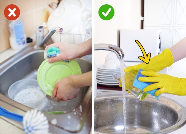 - гумові або латексні рукавички для домашніх справ (миття посуду, підлог, чищення раковин та інших поверхонь і т. д.);