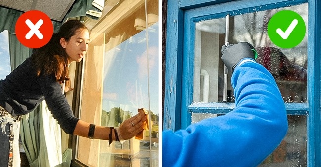 Вікна миють в похмуру погоду, щоб миючий засіб повільніше висихав і не залишало розлучень