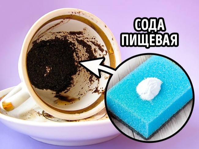 Наліт від чаю і кави, який не змивається звичайним миючим засобом, легко прибирає харчова сода