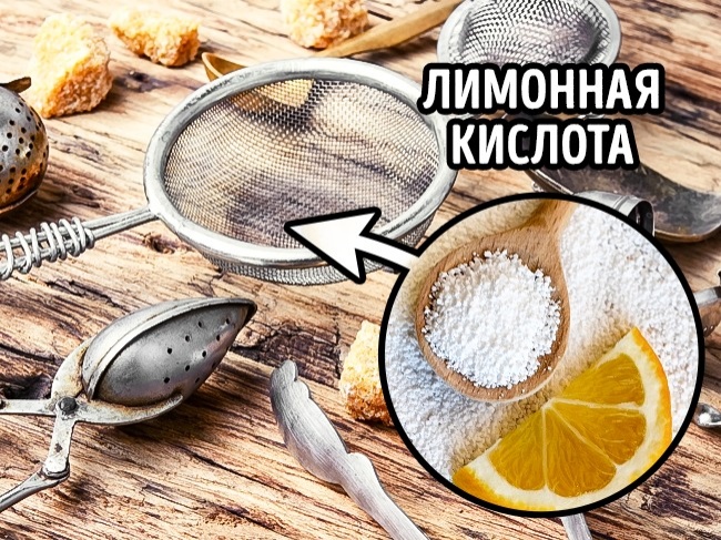 Щоб відмити френч-прес і ситечко для заварки чаю, опустіть їх у воду з лимонною кислотою на годину