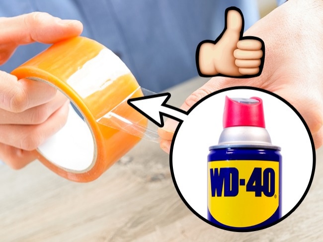 Позбутися від плям клейкої стрічки на склі найкраще допомагає WD40