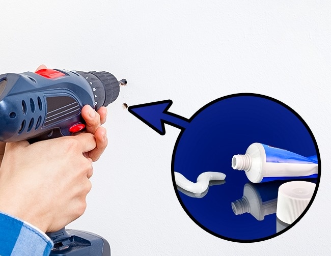 Отвори від цвяхів у білій стіні можна замаскувати за допомогою звичайної зубної пасти