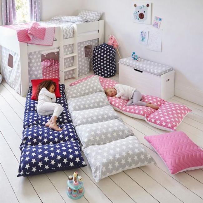 Якщо у вас є подушки, якими ніхто не користується і вони лежать без діла, ось прекрасний варіант, як їх можна використовувати. Такий лежак сподобається не тільки дітям, але й дорослим, адже зробити його можна абсолютно будь-якого розміру.