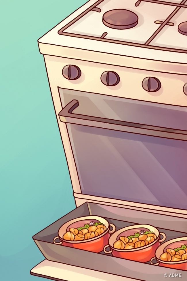 Коли ви запікаєте щось в духовці, ящик під нею теж нагрівається. Якщо ви готуєте багато страв і необхідно, щоб вже приготовані залишалися теплими, просто помістіть їжу в цей ящик.