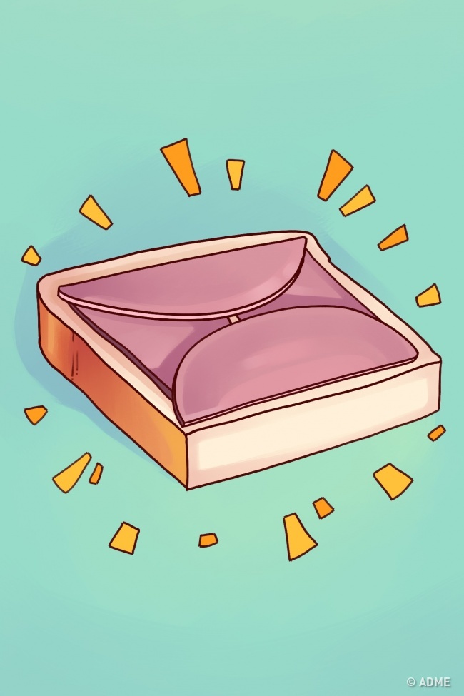 Для ідеального бутерброда потрібно взяти два кружечка ковбаси, розрізати їх навпіл і покласти рівними краями «назовні». Внутрішній перфекціоніст радіє!