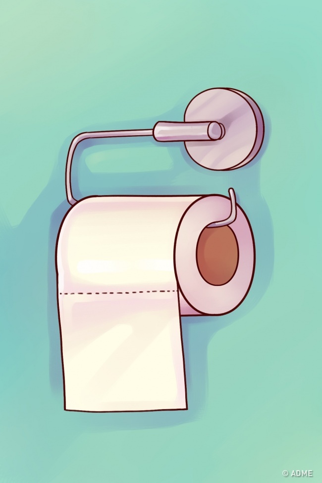 Туалетний папір краще вішати відривним кінцем від стіни, а не до стіни. Хоча на цей рахунок до цих пір ведуться суперечки, але папір, що висить саме так, легше відмотувати, а руки при цьому не доторкаються до стіни, на якій можуть бути шкідливі бактерії.