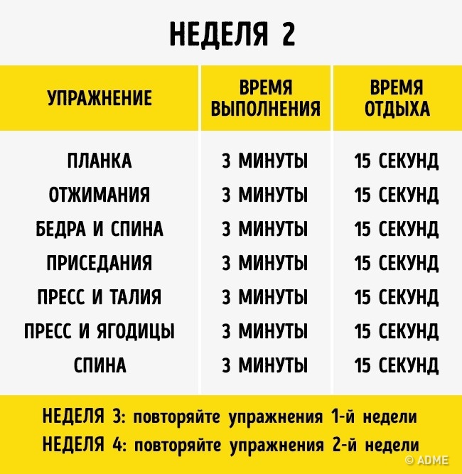 Social.org.ua знайшов комплекс вправ, які змінять ваше тіло всього за 4 тижні. При цьому вам не доведеться витрачати гроші на спортзал і спеціальне обладнання. Все, що потрібно, — сила волі і 10 хвилин кожен день.