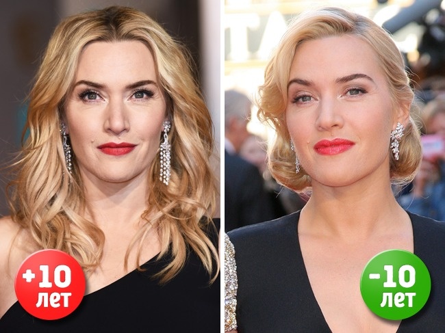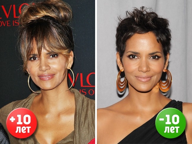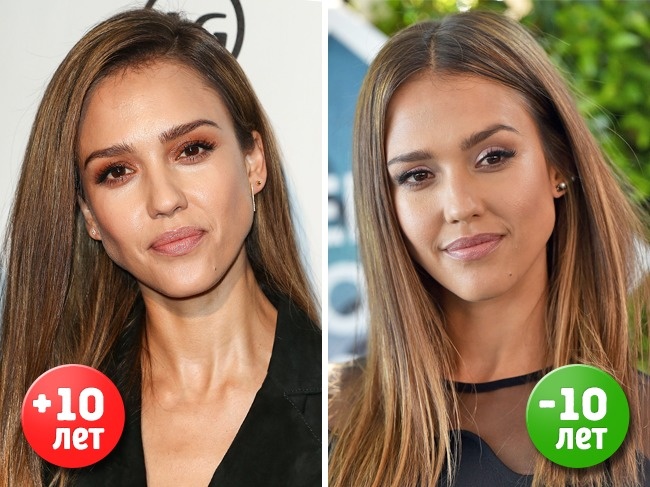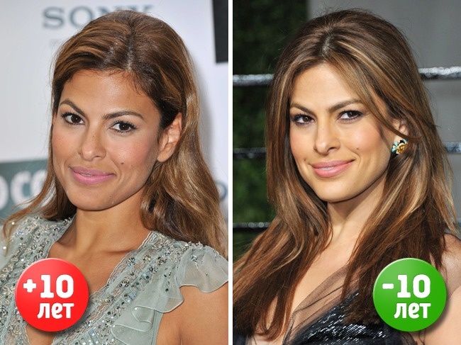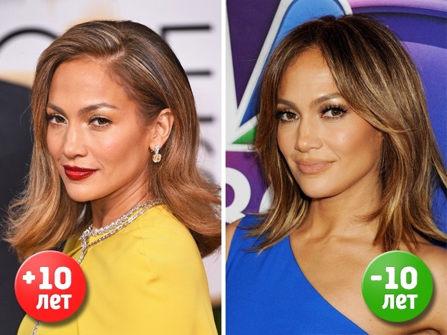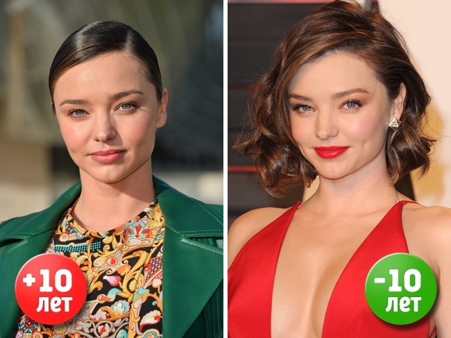 Робить молодше: Створіть обсяг з допомогою мусу або пінки, завершіть укладання маслом для волосся: нанесіть невелику кількість засобу на долоню, проведіть пальцями по волоссю з середини довжини, приділяючи особливу увагу кінчикам. Оптимальна довжина волосся не коротше, ніж до підборіддя, і не нижче плечей.