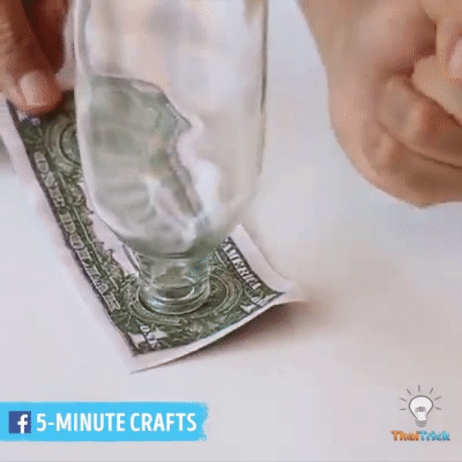 Все, що вам треба для перемоги, — це монетка: загорніть її в банкноту з того краю, який залишиться на склянці.
