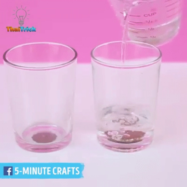 Після того як все безуспішно спробують це зробити, з незворушним виглядом просто налийте в склянку води до самих країв. Тепер монетка залишиться на місці.