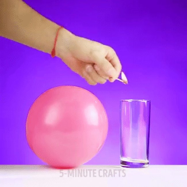Коли вони закінчать, запаліть сірник і киньте на дно склянки. Прикладіть до горла склянки повітряну кульку і піднімайте конструкцію.