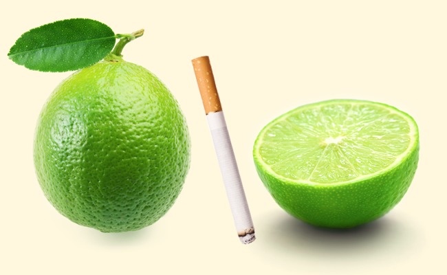 Підпаліть фільтр сигарети і загасити його, надавши фільтру гостру форму. Потім різким рухом руки розрізати лайм.