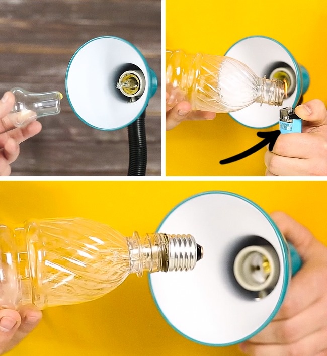 Витягнути застряглий в патроні цоколь допоможе звичайна пластикова пляшка. Горлечко пляшки потрібно розплавити запальничкою і вкрутити його в цоколь. Після того як пластмаса схопиться, застряглу частина лампочки можна буде легко викрутити.