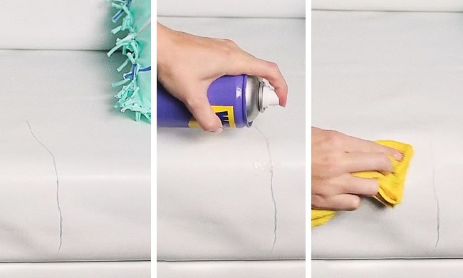 Прибрати сліди від маркера або олівця з шкіряних меблів можна за допомогою все того ж WD-40. Аерозоль слід нанести на слід злочину», а потім протерти серветкою для прибирання. Після цього залишиться тільки змити сліди WD-40 водою.