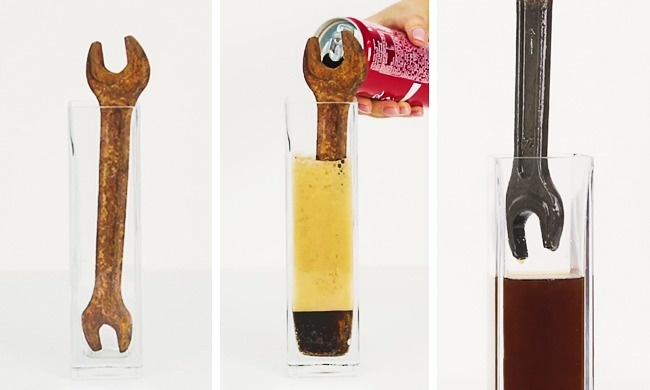 Видалити іржу можна, не докладаючи зусиль. Все, що для цього потрібно, — колу і час. Заіржавілий інструмент необхідно помістити в ємність з колою на 24 години, і він буде як новий.