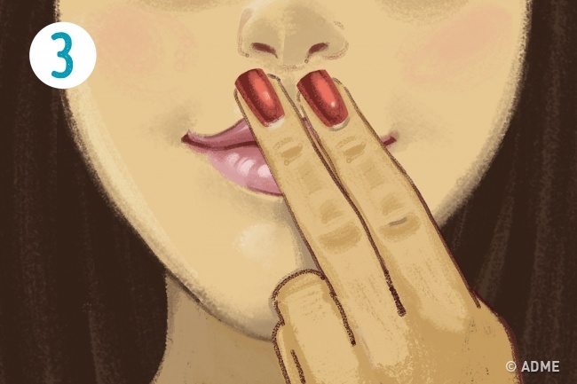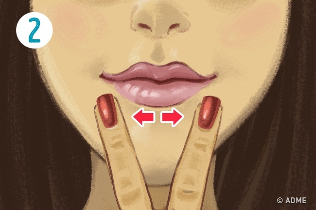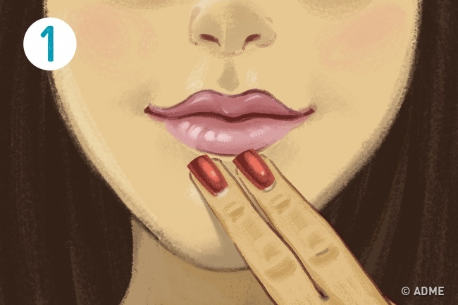 1. Поставте вказівний і середній пальці під нижньою губою, постарайтеся відчути, як зігріваються і розслабляються тканини під ними, а губа ніби наливається.