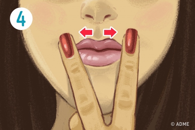 2. Починайте малювати собі посмішку: потрібно акуратно вести пальці до куточків рота, злегка підтягуючи їх вгору.