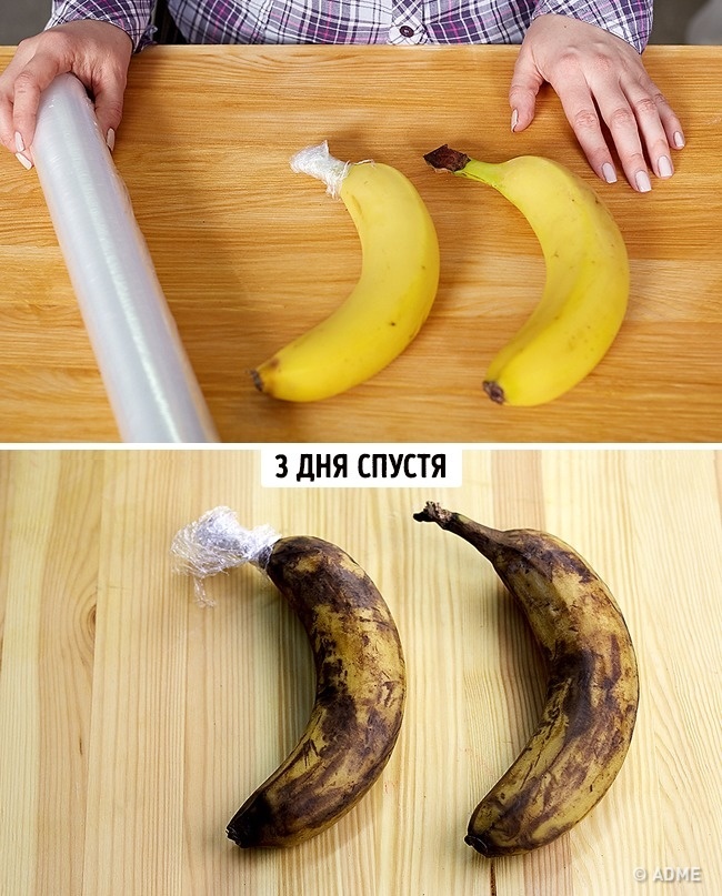 № 12: Банани збережуть свою свіжість довше, якщо обернути пластиковою плівкою їх стебла