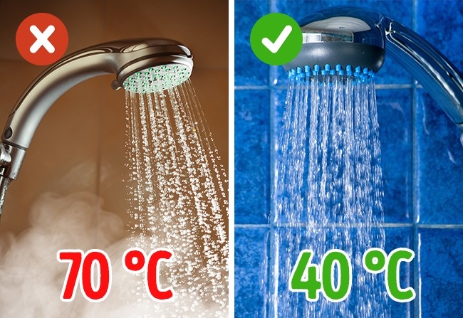 Слідкуйте за температурою води, якою ви миєте голову. Вона повинна бути теплою або навіть трохи прохолодною, а не гарячою. Гаряча вода збільшує кількість шкірного жиру, що виділяється шкірою голови. Сушити волосся краще природним шляхом.