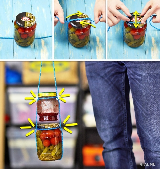 Як робити. Кладемо предмет на мотузку і обв'язуємо його звичайним вузлом, яким зав'язуємо шнурки. Потім петлю вузла розтягуємо на стінки предмета і затягуємо.