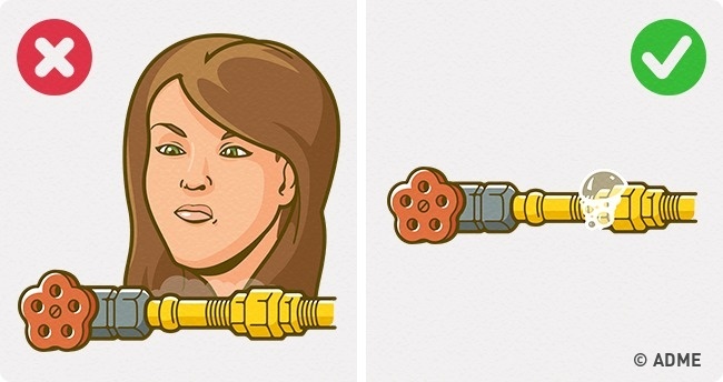 Витік газу — річ смертельно небезпечна, тому важливо вчасно її помітити й усунути. Якщо відчули характерний запах, нанесіть на газову трубу мильний розчин. Місце витоку відразу видасть себе, так як навколо нього почнуть у великій кількості утворюватися бульбашки.