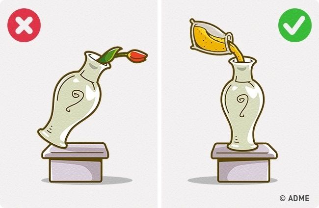 Не кожну вазу набувають виключно для того, щоб ставити в неї квіти. Багато такі керамічні вироби стають красивим, але крихким прикрасою інтер'єру. Щоб ваза була стійкою, в неї можна просто насипати піску. Втім, якщо ваза все-таки розіб'ється, ви вже знаєте, що робити.