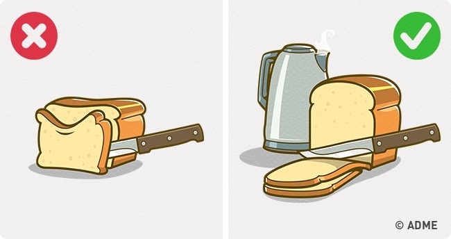 У смачного свіжого хліба є один очевидний недолік: його складно красиво нарізати, адже скоринка при тиску ножа кришиться і розпадається. Спростить завдання глек з окропом, що стоїть поруч з паляницею. Пар розм'якшить скоринку, нарізати хліб можна буде максимально тонко.