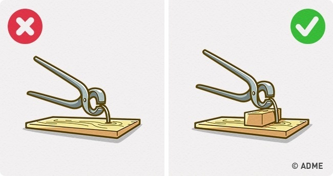Той, хто вже намагався витягнути кусачками довгий цвях, знає, як непросто це зробити. Металеві вироби гнуться і застрягти на півдорозі. Однак набагато простіше це завдання стане, якщо підкласти під кусачки невеликий брусок.