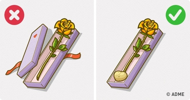 Зберегти квіти свіжими без води цілий тиждень або більше можна за допомогою картоплі. Для цього кінці стебел потрібно увіткнути в бульбу. У такому вигляді квіти цілком можна упаковувати в посилку.