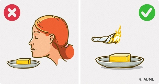 Вершкове масло відрізнити від маргарину на вигляд практично неможливо. Однак зробити це можна за допомогою нюху. Для цього втирайте невелика кількість продукту в папір і підпаліть її. Запах горіння масла апетитний і солодкуватий, а у маргарину — противний і трохи нагадує запах смаженого сала.