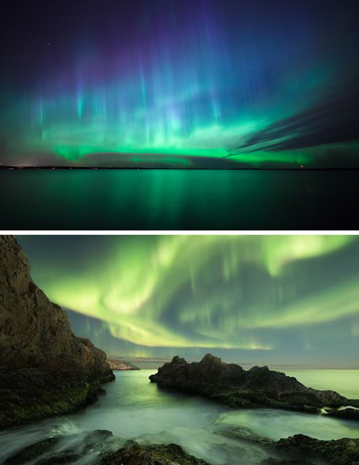 Північне сяйво, Фінляндія — північне сяйво над скелястим узбережжям Баренцева моря, Мурманська область