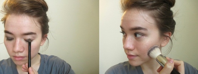 Якщо ви хочете нафарбувати очі тінями, то краще зробити це до нанесення тону. Якщо тіні обсиплються або ви захочете виправити деякі недоліки, ви зможете спокійно стерти тіні, при цьому не зіпсувавши тон особи.