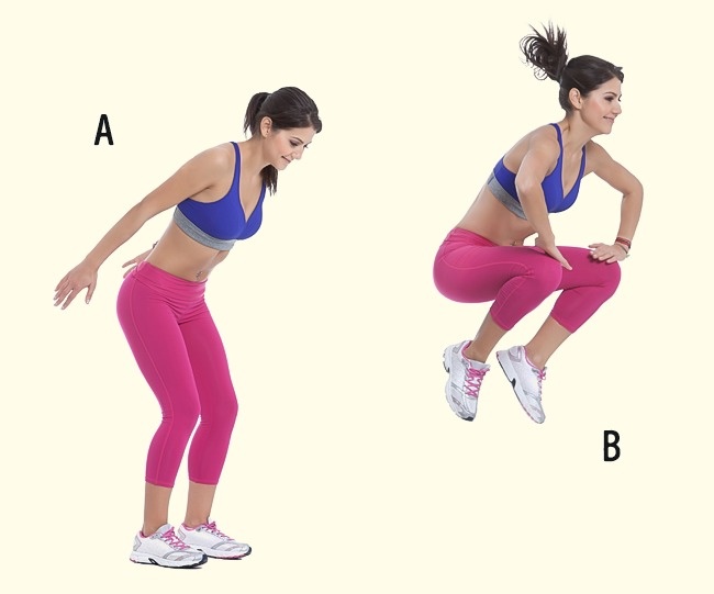 Ця вправа вимагає більше зусиль, ніж інші. C першого разу складно зробити 30 стрибків, тому радимо розділити їх на 3 сесії по 10 стрибків з хвилинним відпочинком.