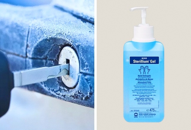 Як вирішити проблему: звичайний засіб для дезінфекції рук відмінно допомагає прибрати утворився лід і привести механізм в дію. Нанесіть кілька крапель на ключ або в свердловину, і все піде як по маслу.