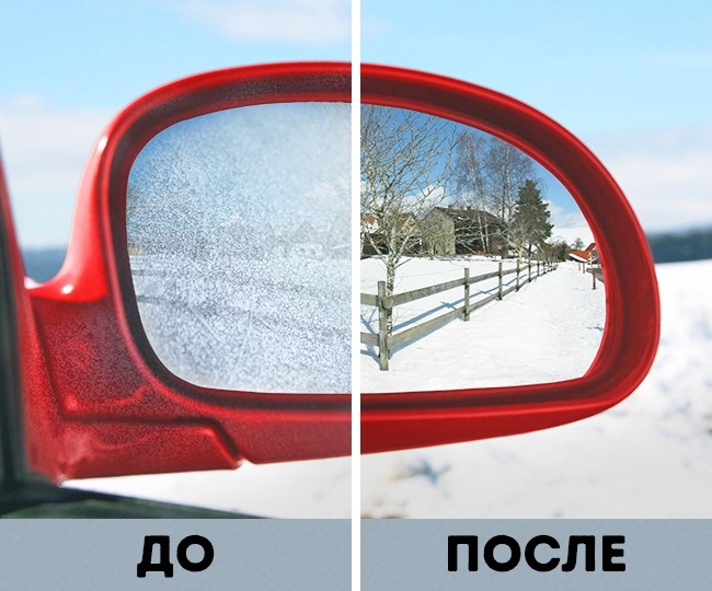 Як запобігти: щоб уникнути утворення льоду на дзеркалах, просто загорніть їх на ніч в поліетиленові пакети і щільно закріпіть гумкою. Знявши вранці пакети, ви побачите, що дзеркала ідеально чисті, і вам не доведеться витрачати час на чистку.