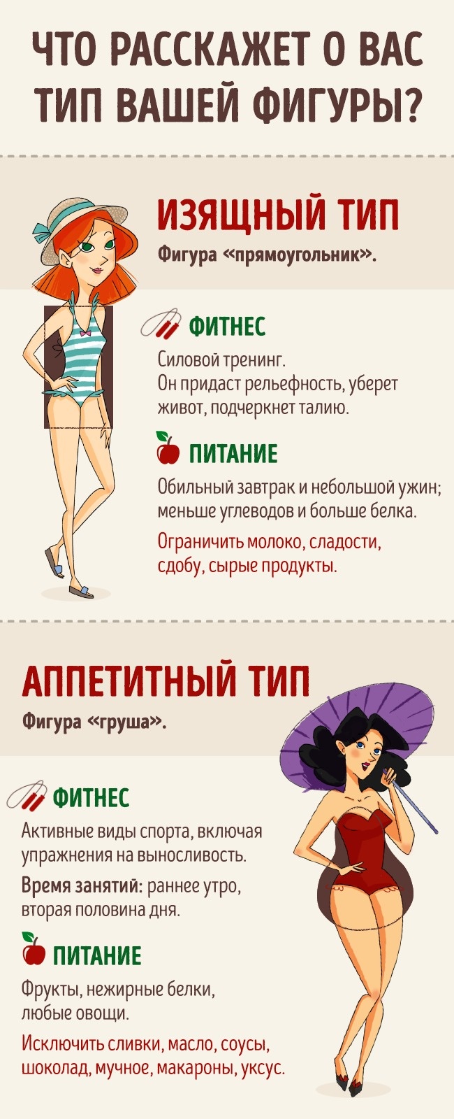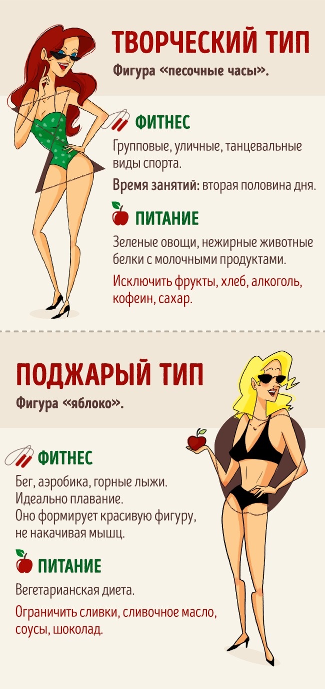 Грунтуючись на радах експерта, Social.org.ua підготував шпаргалку, яка допоможе вам підібрати ідеальний для вашої фігури вид фізичної активності, а також підкоригувати схему живлення. І результат не змусить себе чекати.