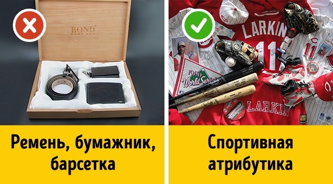 Не треба також брати запонки, затискачі для краватки, одяг і особливо краватки. Це пов'язано з роботою. Якщо можете подарувати якісний алкоголь — вперед. А якщо швидше ні, ніж так, але дуже хочеться, подаруйте щось близьке. Наприклад, алкогри або навіть перегінний куб Буде в тему.