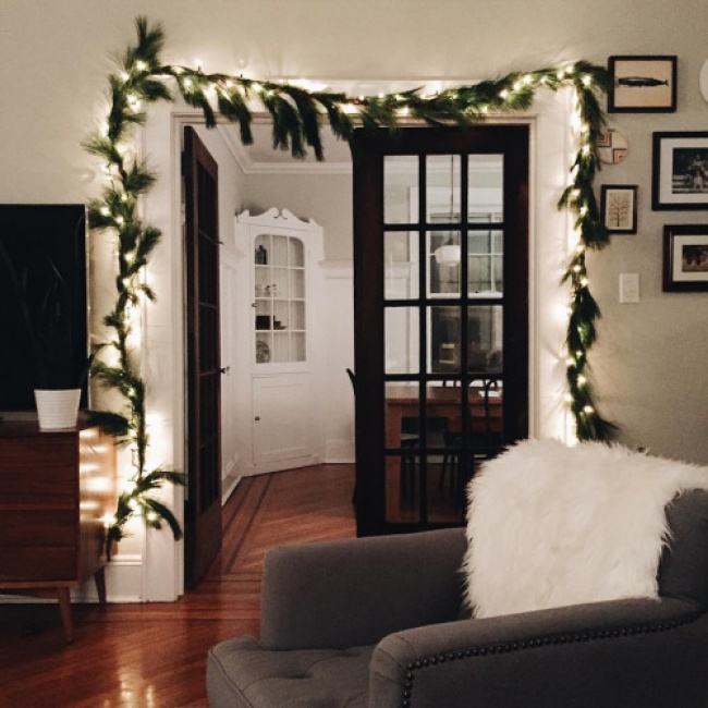 Міжкімнатні двері можуть стати воістину чарівними, якщо правильно підійти до оформлення дверних прорізів. Іноді досить поєднання натуральної і світиться гірлянд, щоб інтер'єр заграв по-новому.