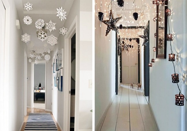 Коридор — одне з найпопулярніших місць для прикраси свята. А даремно. Подивіться, яку красу можна створити на стелі. В захваті залишаться і домашні, і гості.