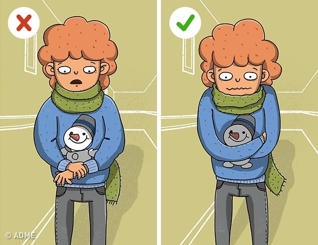 Від обморожень вас гарантовано захистять подвійні рукавиці, пара светрів і шкарпеток. Дуже добре користуватися одягом, виготовленої з водонепроникних і теплоізоляційних матеріалів. Не забувайте належним чином утеплити голову і шию, де розташовані судини, що несуть кров до голови.