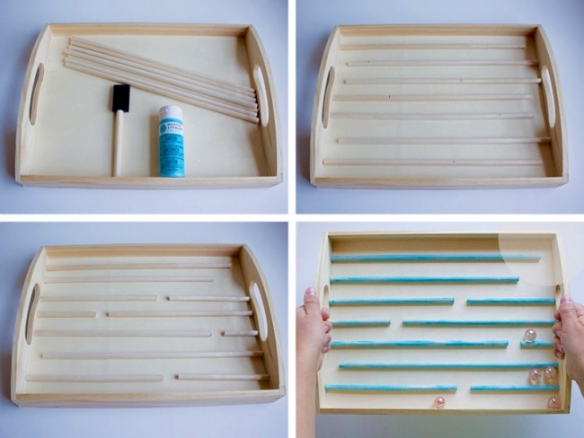 Коли ви зробите такий лабіринт, напевно зрозумієте, як гра з ним затягує. Катаючи кульки по вузьких заплутаних проходах, ваша дитина не помітить, як летить час.