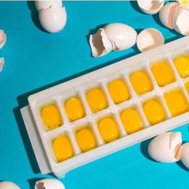Бувають випадки, коли ми не встигаємо використовувати всі яйця, поки вони свіжі, або використовуємо тільки білки, а жовтки дівати нікуди. Їх теж можна заморозити! Для цього необхідно просто розбити їх і вилити у форму для льоду, додавши невелику кількість солі або цукру (це дозволить їм зберегти первісну консистенцію), а потім використовувати в міру необхідності.