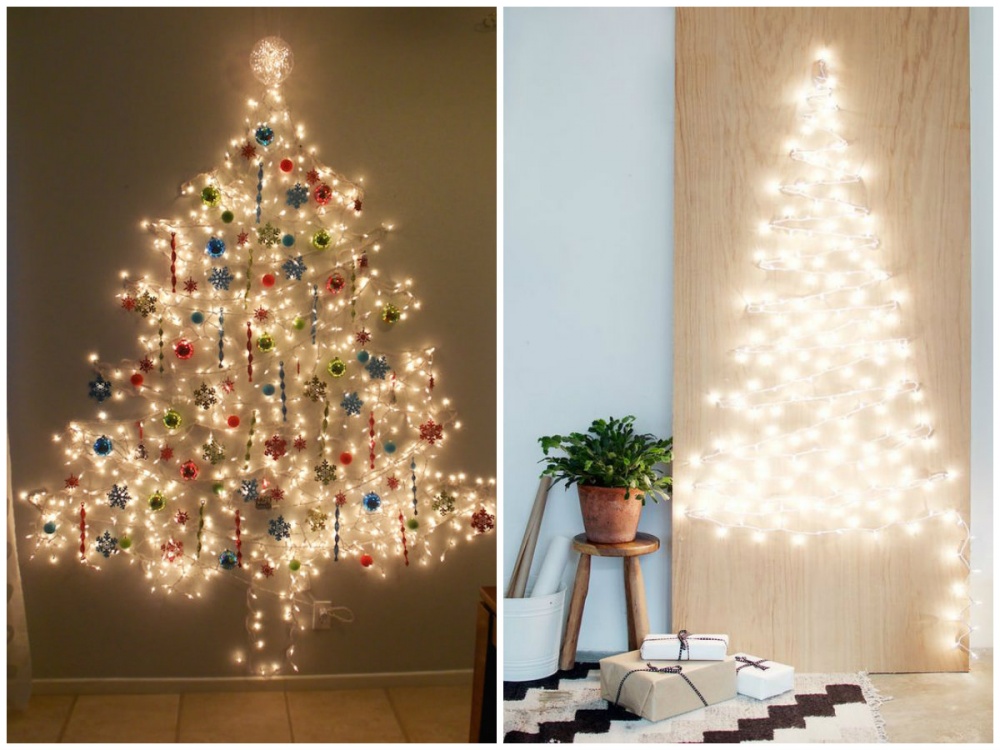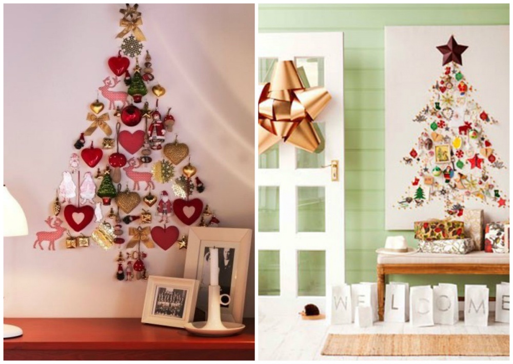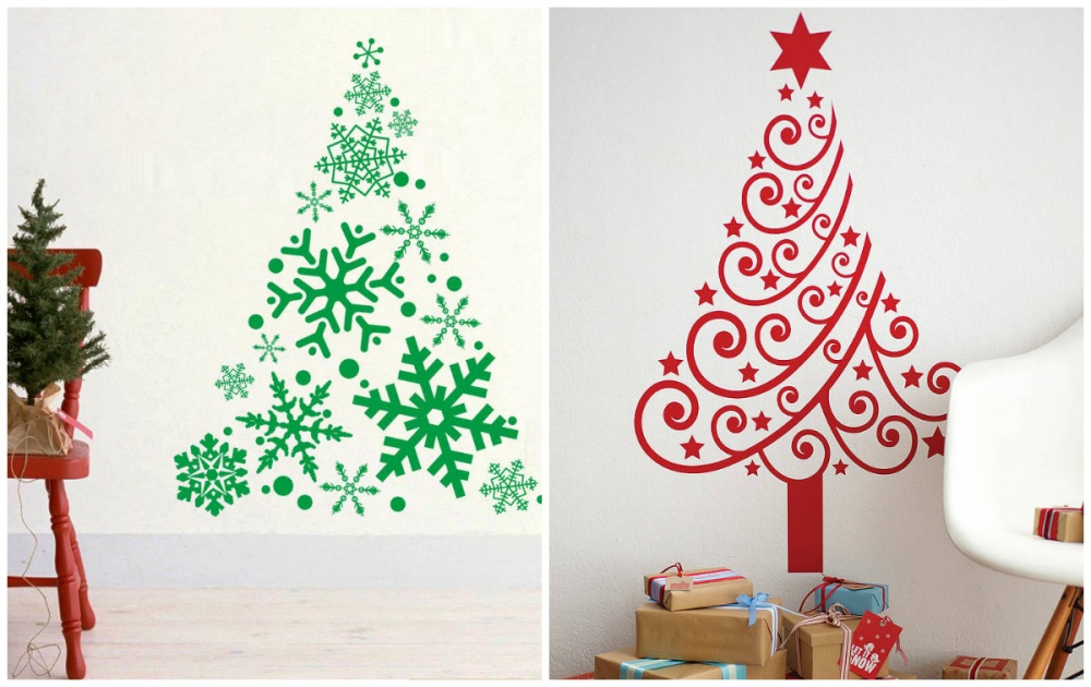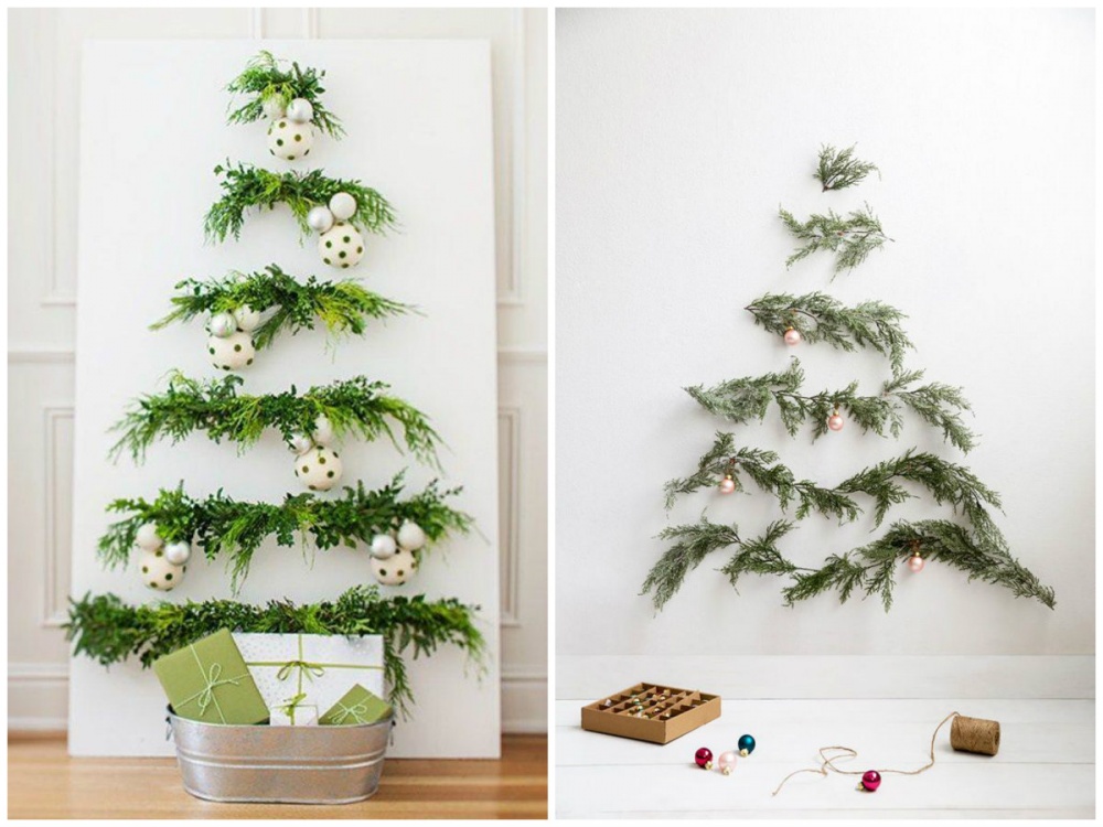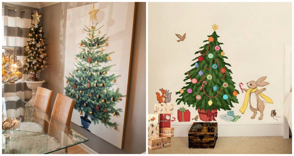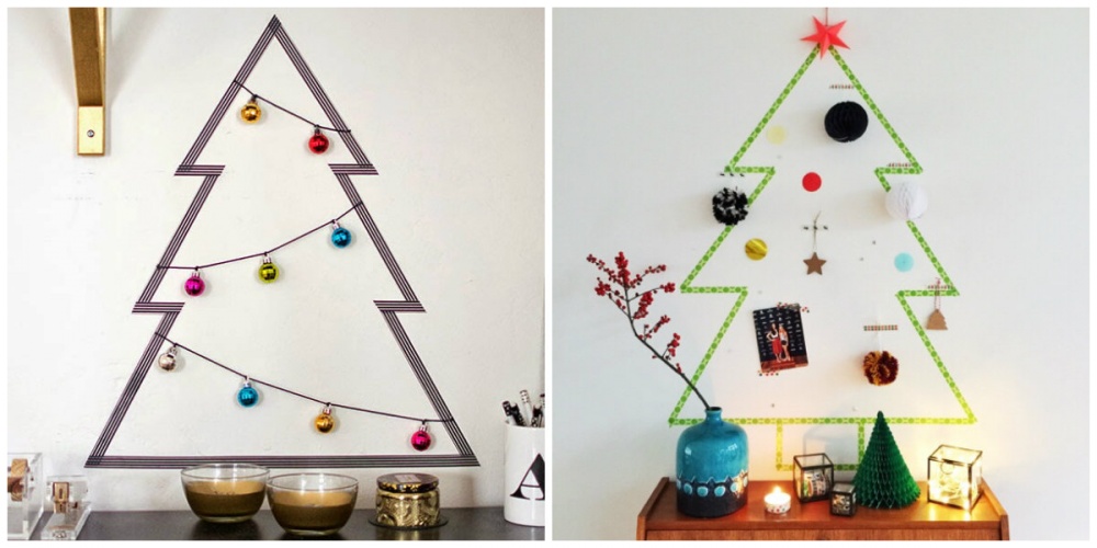 Таку ялинку можна як купити, так і намалювати. Відмінний варіант для тих, у кого зовсім немає місця для більш об'ємного деревця.