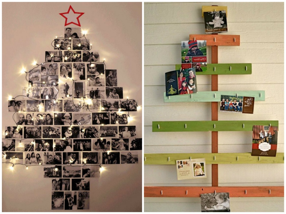Фотографії можна просто приклеїти на стіну або ватман. Більш складний варіант — зробити дерев'яний каркас з непотрібних дощечок, на який зручно прикріплювати яскраві моменти з життя вашої родини. Мабуть, це сама душевна ідея для ялинки.